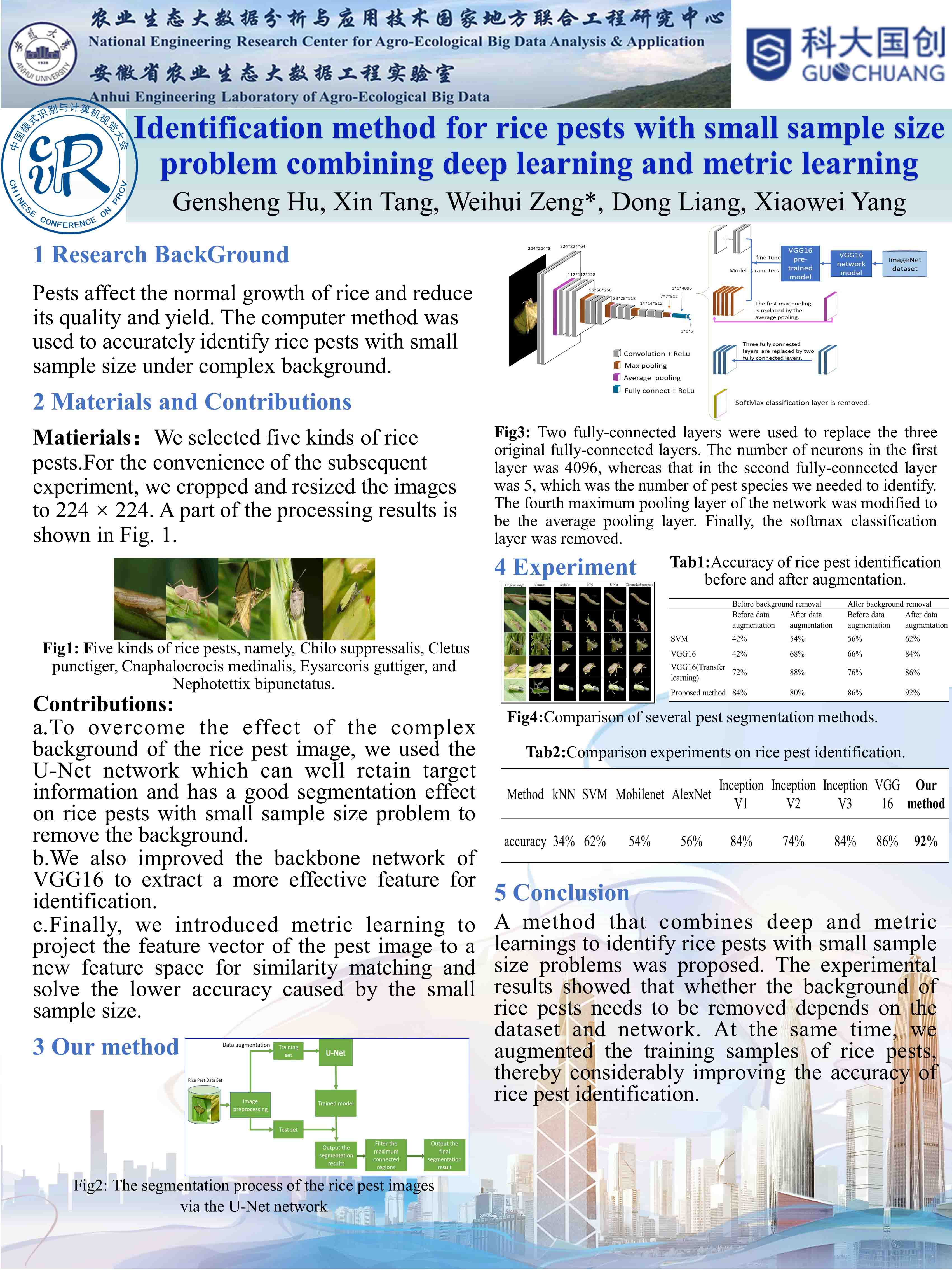 112 | Identification method for rice pests with small sample size problem combining deep learning and metric learning | Hu, Gensheng; Tang, Xin; Zeng, Weihui*; liang, dong; Yang, Xiaowei |