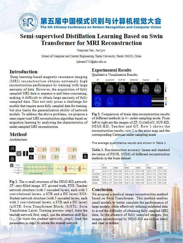 127 | Semi-Supervised Distillation Learning Based on Swin Transformer for MRI Reconstruction | Tan, Yuanyuan ; Lyu, Jun* |