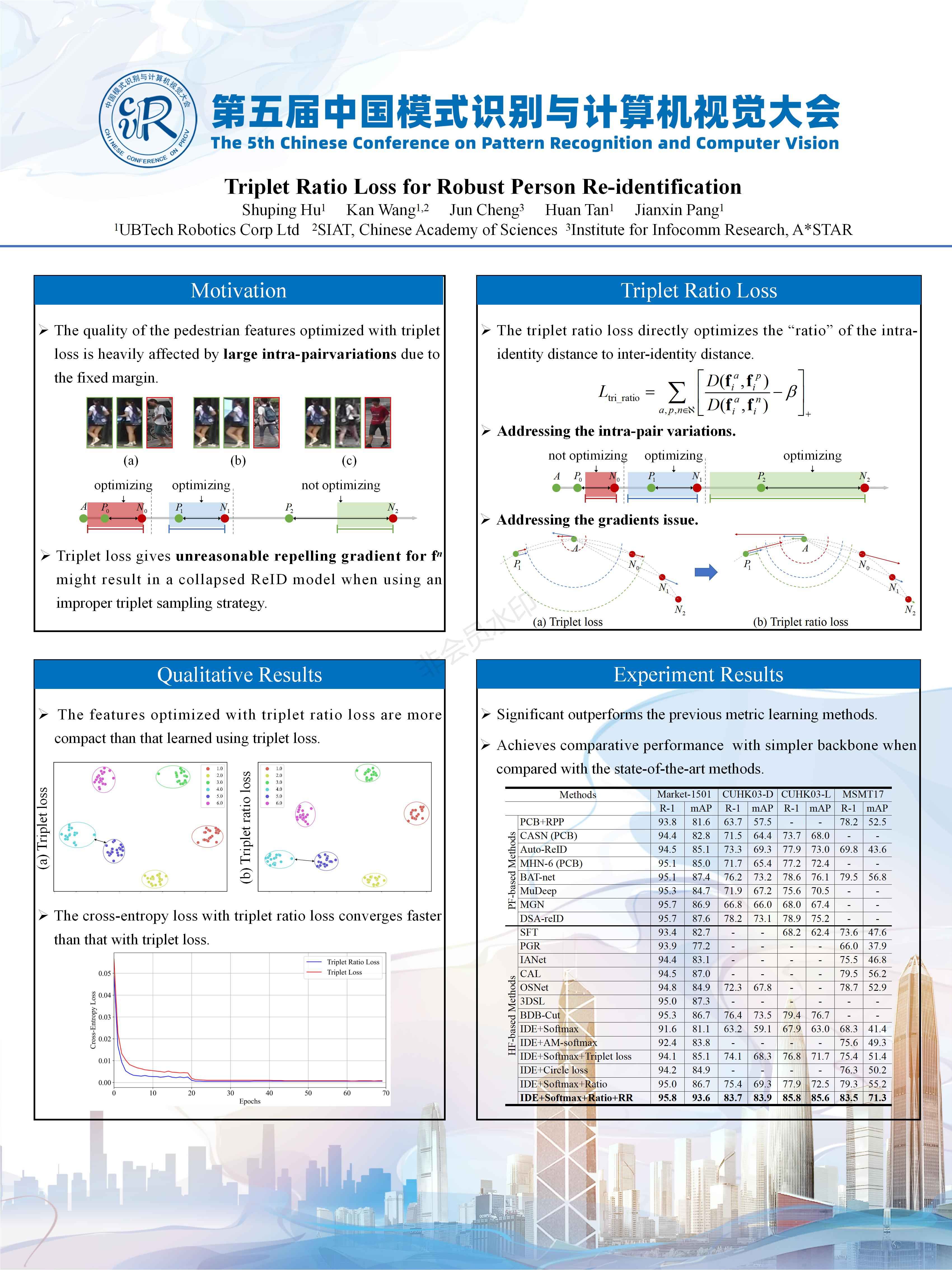 146 | Triplet Ratio Loss for Robust Person Re-identification | Hu, Shuping; Wang, Kan; Cheng, Jun; Tan, Huan; Pang, Jianxin* |