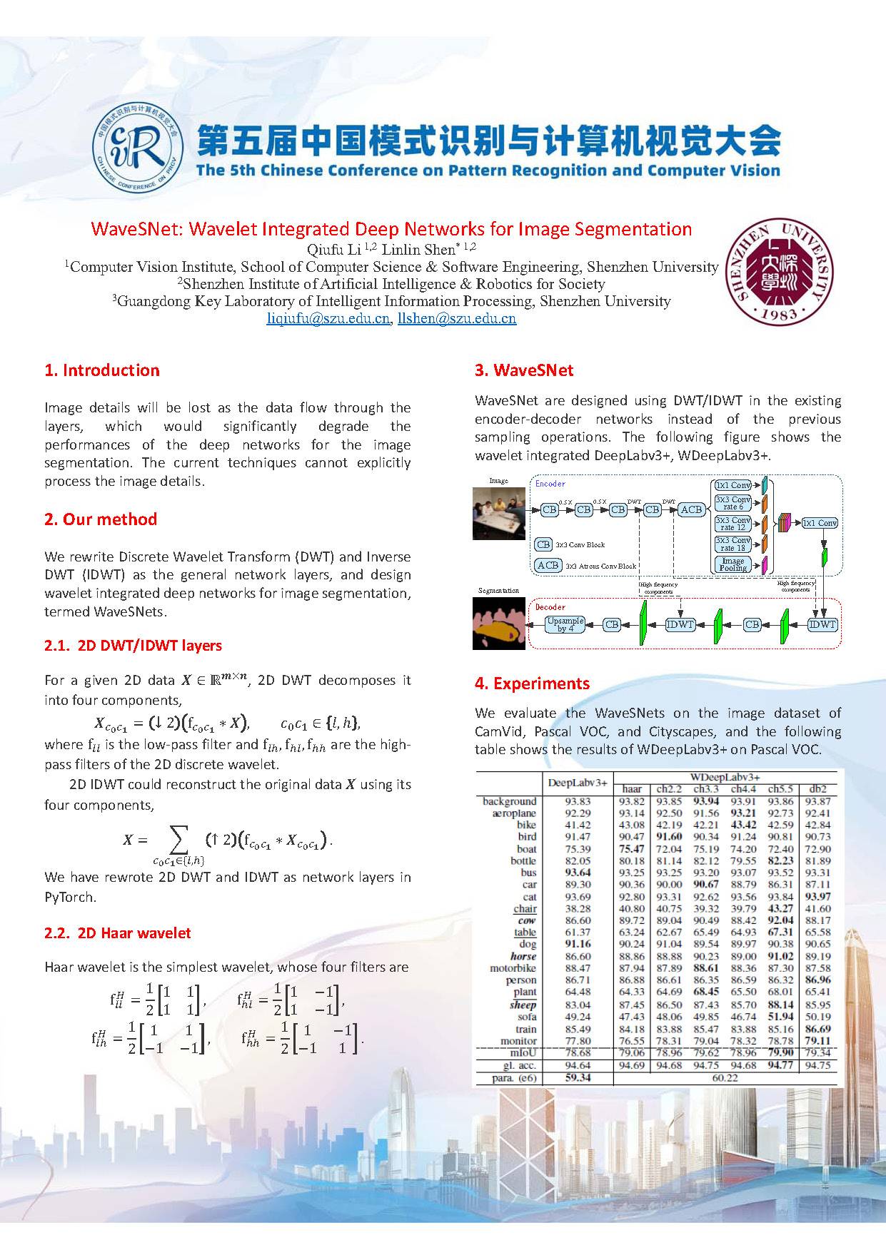 161 | WaveSNet: Wavelet Integrated Deep Networks for Image Segmentation | Li, Qiufu; Shen, Linlin* |