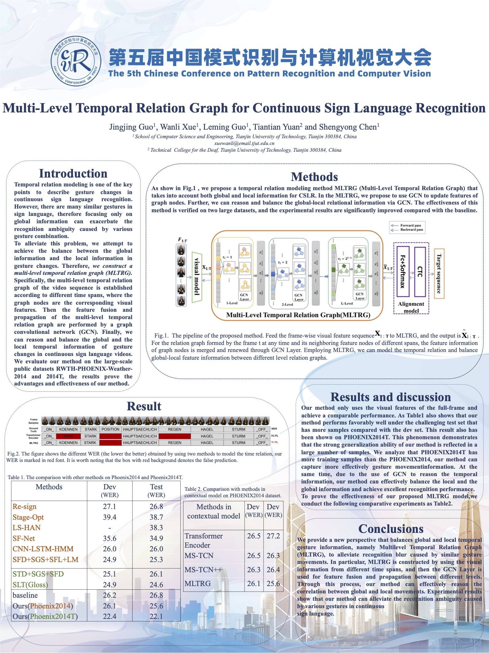 167 | Multi-Level Temporal Relation Graph for Continuous Sign Language Recognition | Guo, Jingjing; Xue, Wanli*; Guo, Leming; Yuan, Tiantian; Chen, Shengyong |