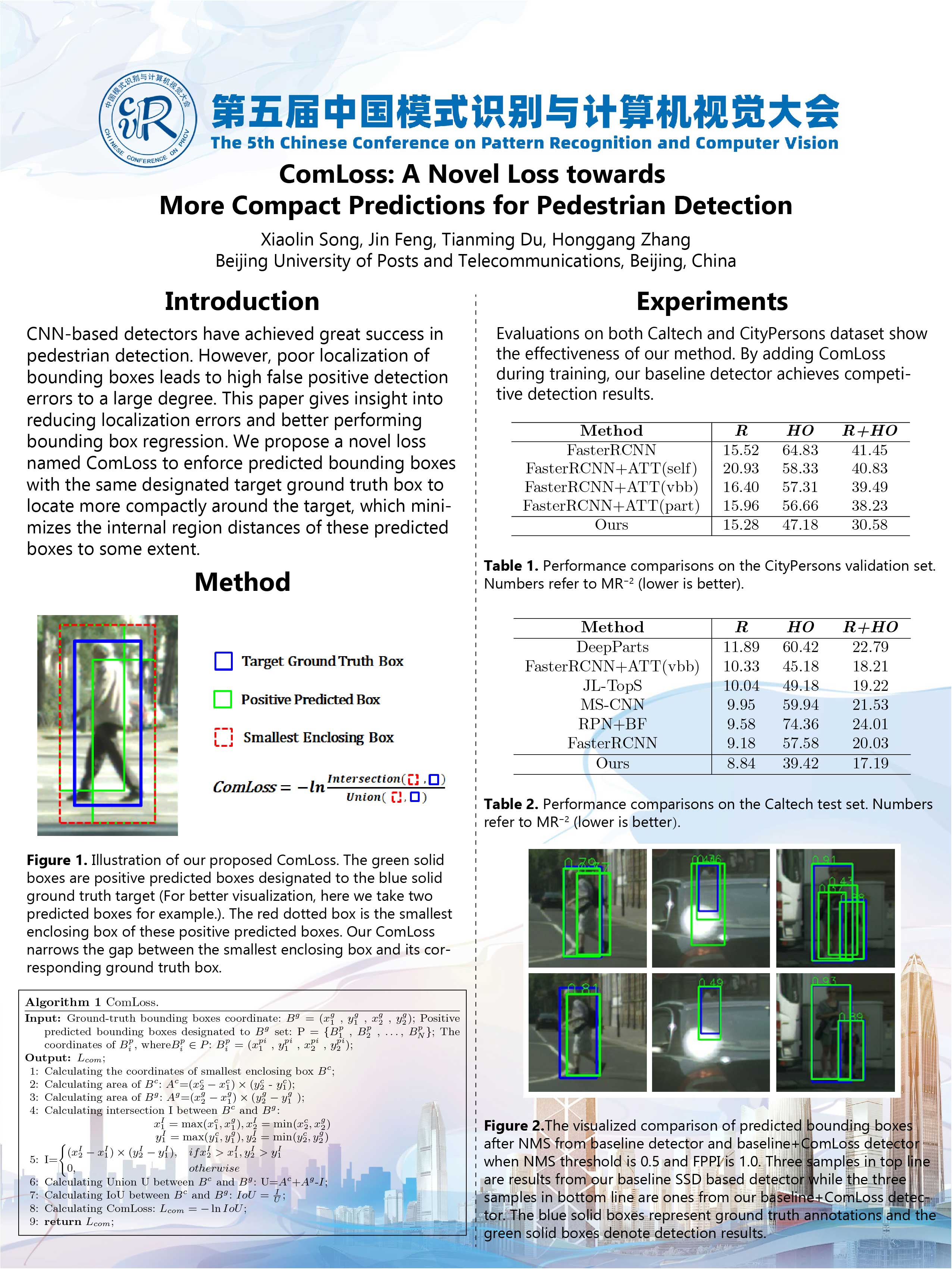 202 | ComLoss: A Novel Loss towards More Compact Predictions for Pedestrian Detection | Song, Xiaolin*; Feng, Jin; Du, Tianming; Zhang, Honggang |