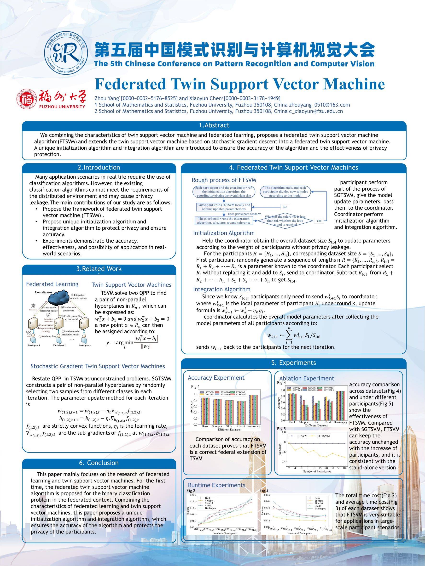 242 | Federated Twin Support Vector Machine | Yang, Zhou; Chen, Xiaoyun* |