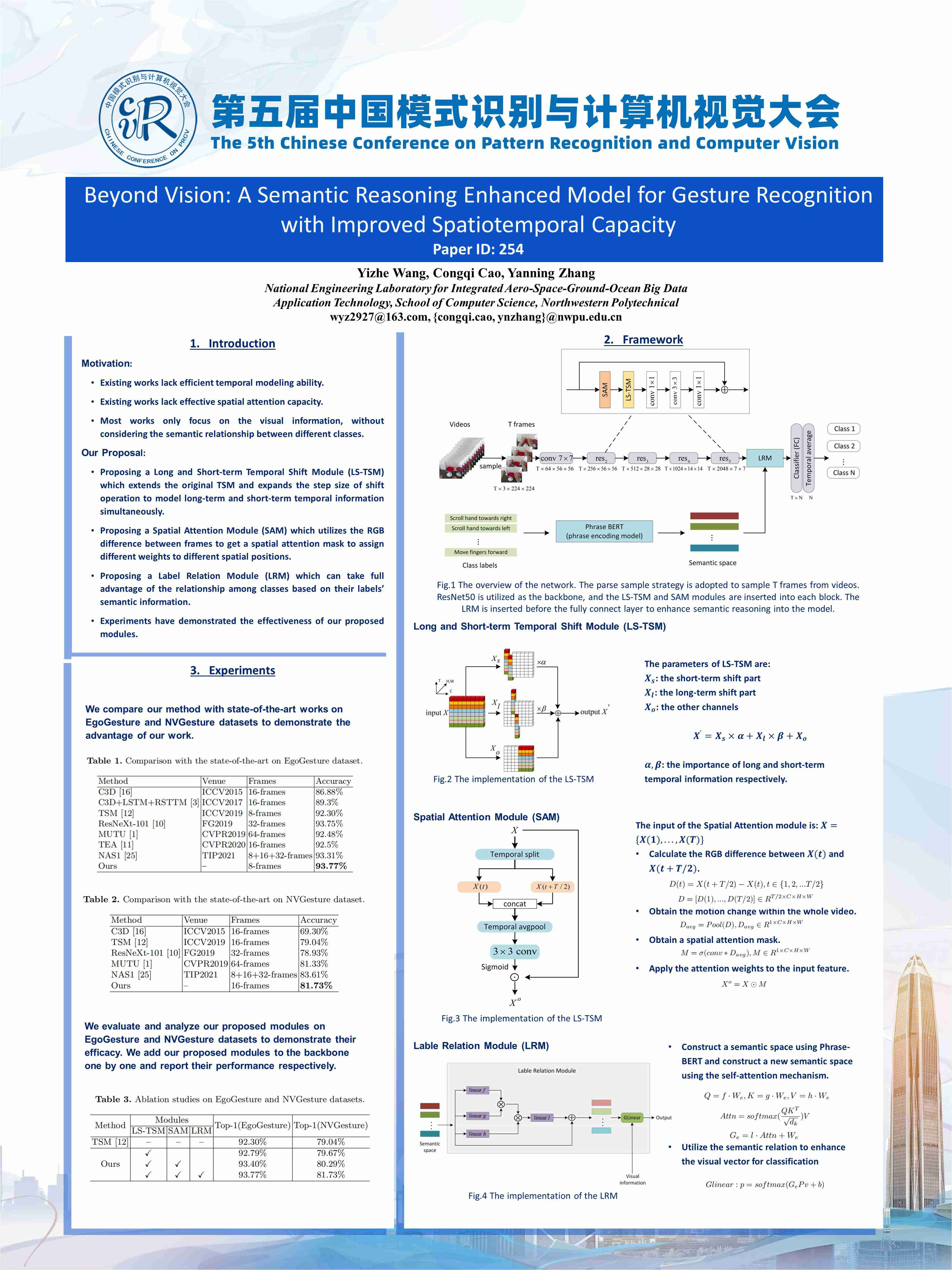 254 | Beyond Vision: A Semantic Reasoning Enhanced Model for Gesture Recognition with Improved Spatiotemporal Capacity | Wang, Yizhe; Cao, Congqi*; Zhang, Yanning |
