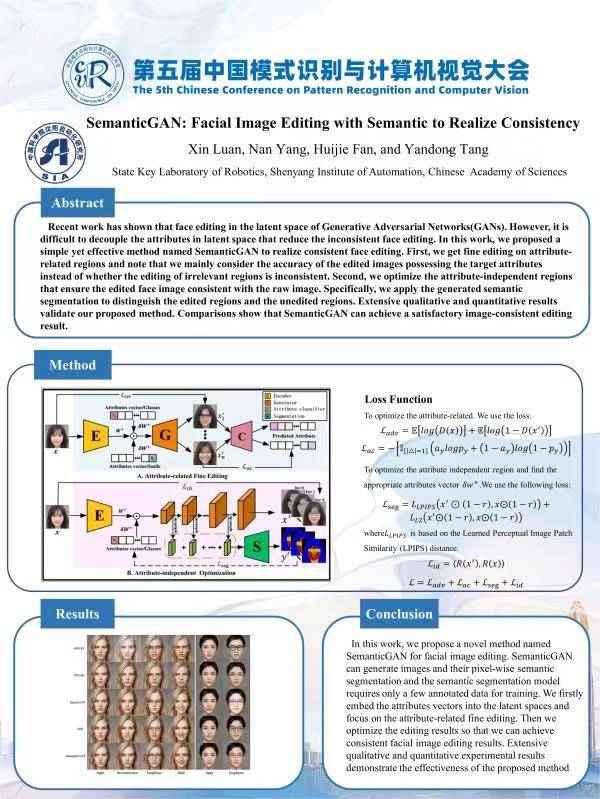 260 | SemanticGAN: Facial Image Editing with Semantic to Realize Consistency | Luan, Xin; Yang, Nan; Fan, Huijie*; Tang, Yandong |