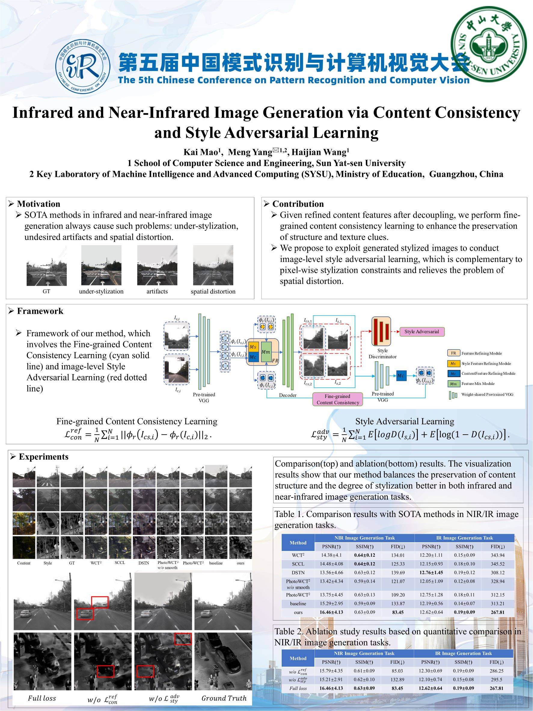261 | Infrared and Near-Infrared Image Generation via Content Consistency and Style Adversarial Learning | Mao, Kai; Yang, Meng*; Wang, Haijian |