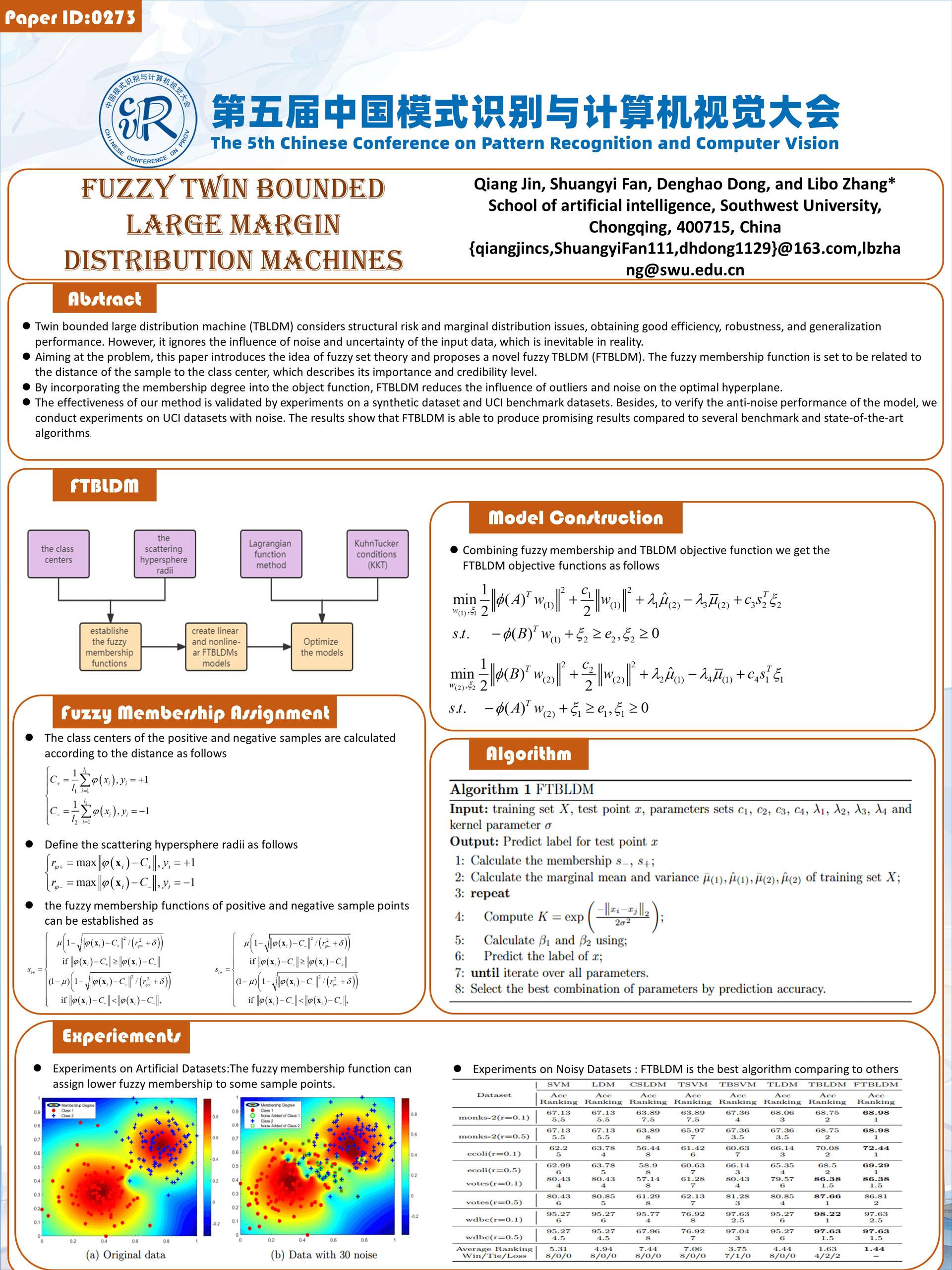 273 | Fuzzy Twin Bounded Large Margin Distribution Machines | Jin, Qiang; Fan, Shuangyi; Dong, Denghao; Zhang, Libo* |