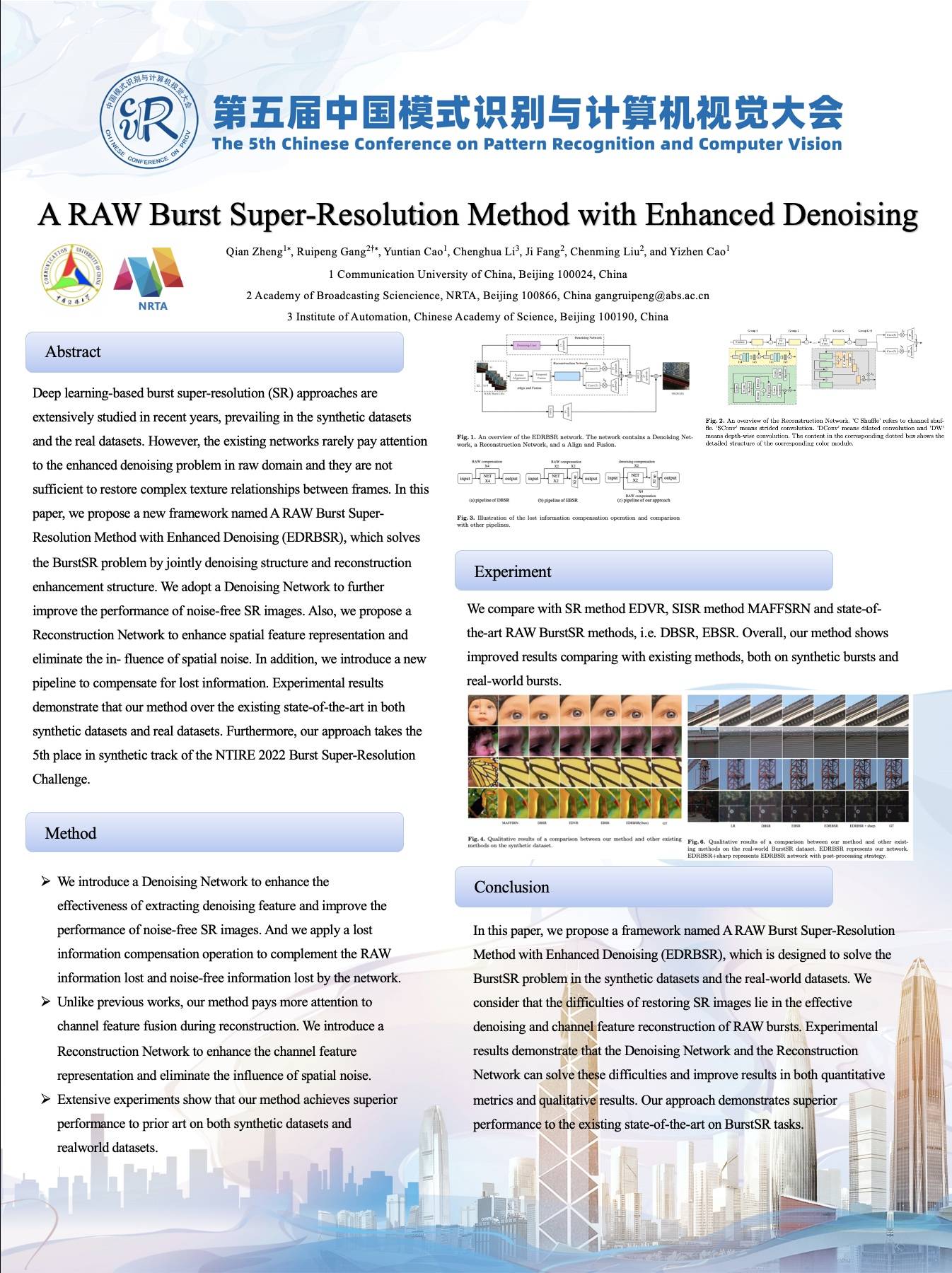 288 | A RAW Burst Super-Resolution Method with Enhanced Denoising | Zheng, Qian*; Gang, Ruipeng; Cao, Yuntian; Li, Chenghua; Fang, Ji; Liu, Chenming; Cao, Yizhen |