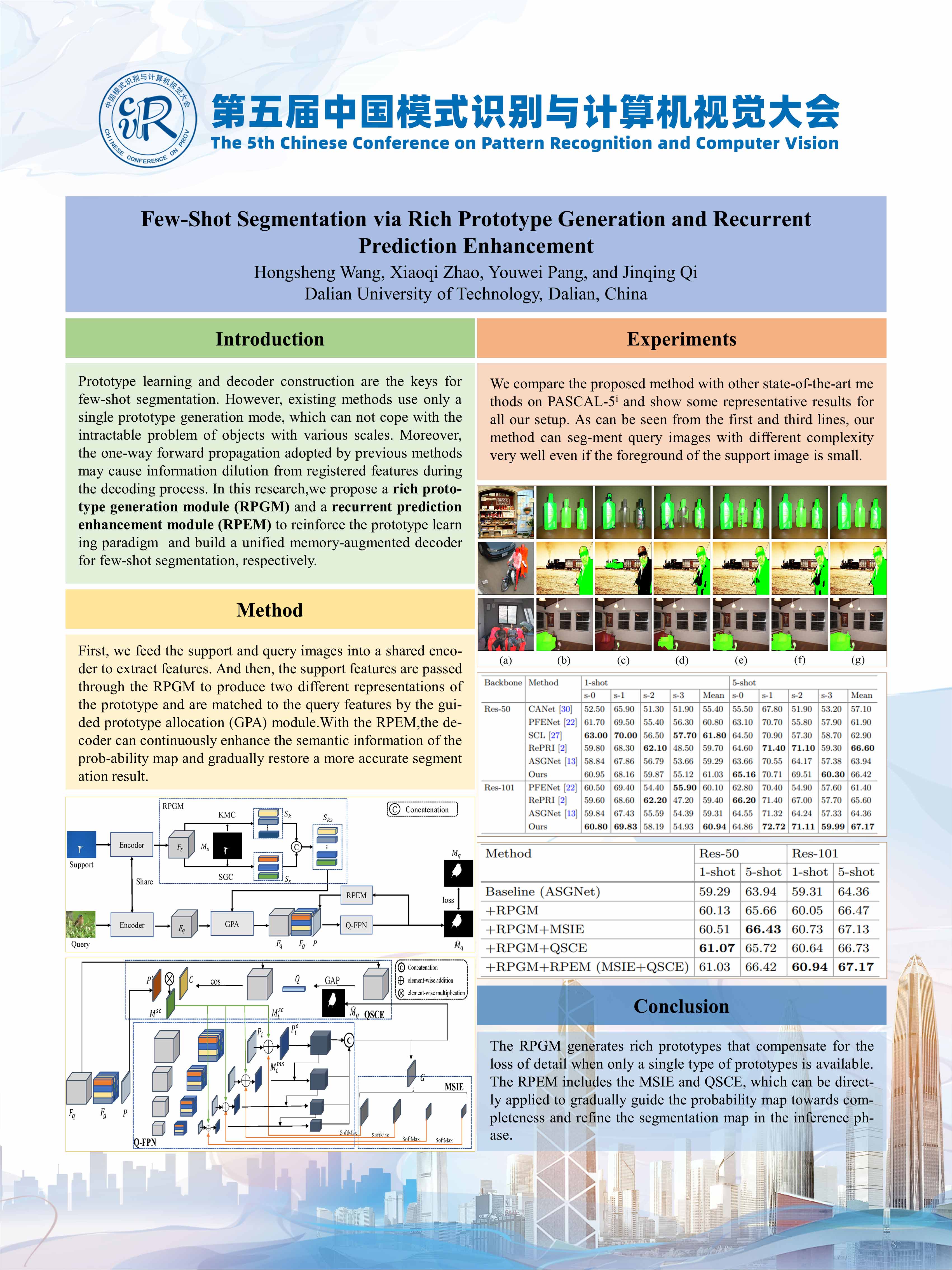 290 | Few-Shot Segmentation via Rich Prototype Generation and Recurrent Prediction Enhancement | Wang, Hongsheng*; Zhao, Xiaoqi; Pang, Youwei; Qi, Jinqing |