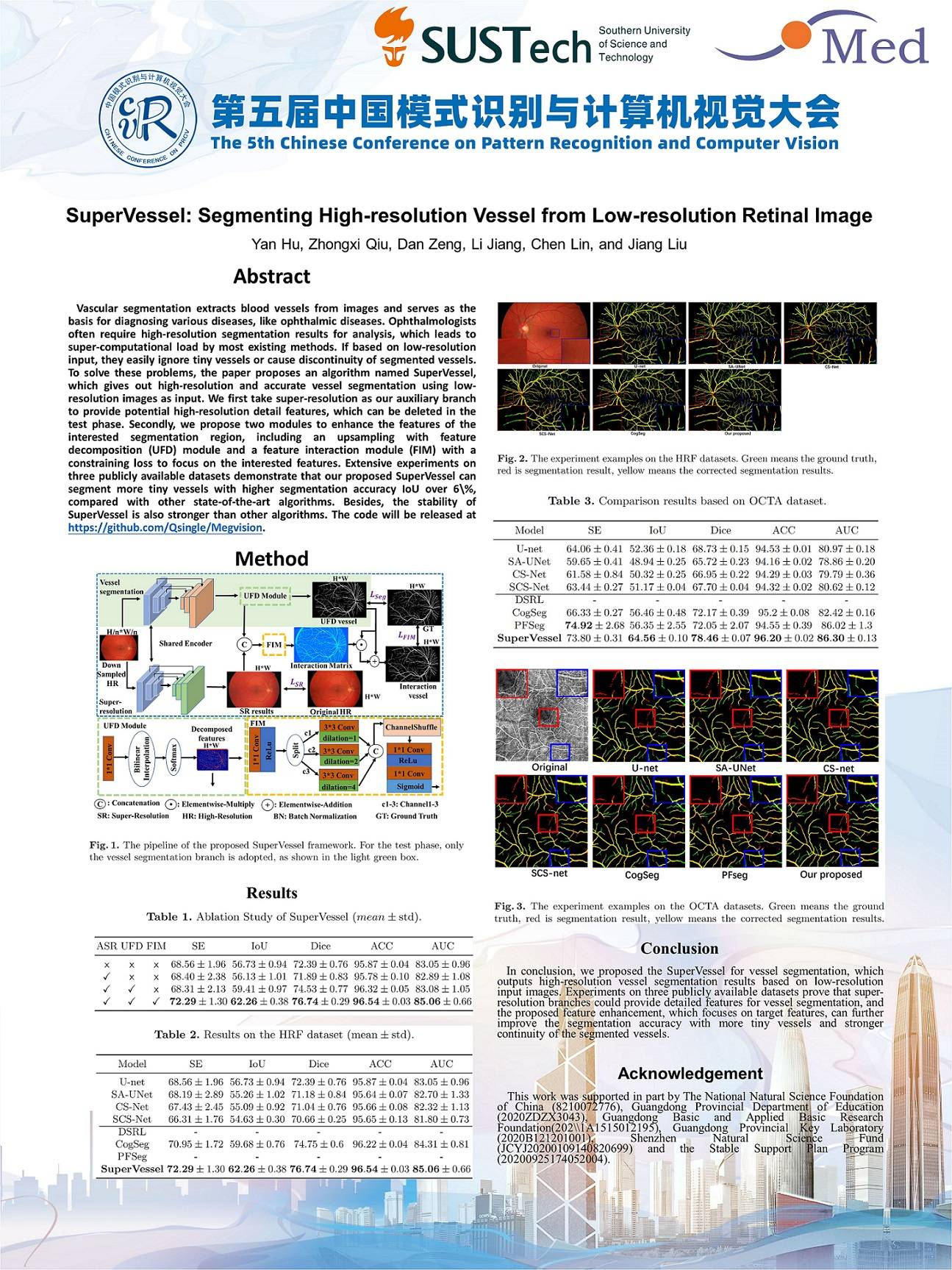 291 | SuperVessel: Segmenting High-resolution Vessel from Low-resolution Retinal Image | Hu, Yan*; Qiu, Zhongxi; Zeng, Dan; Jiang, Li; Lin, Chen; Liu, Jiang |