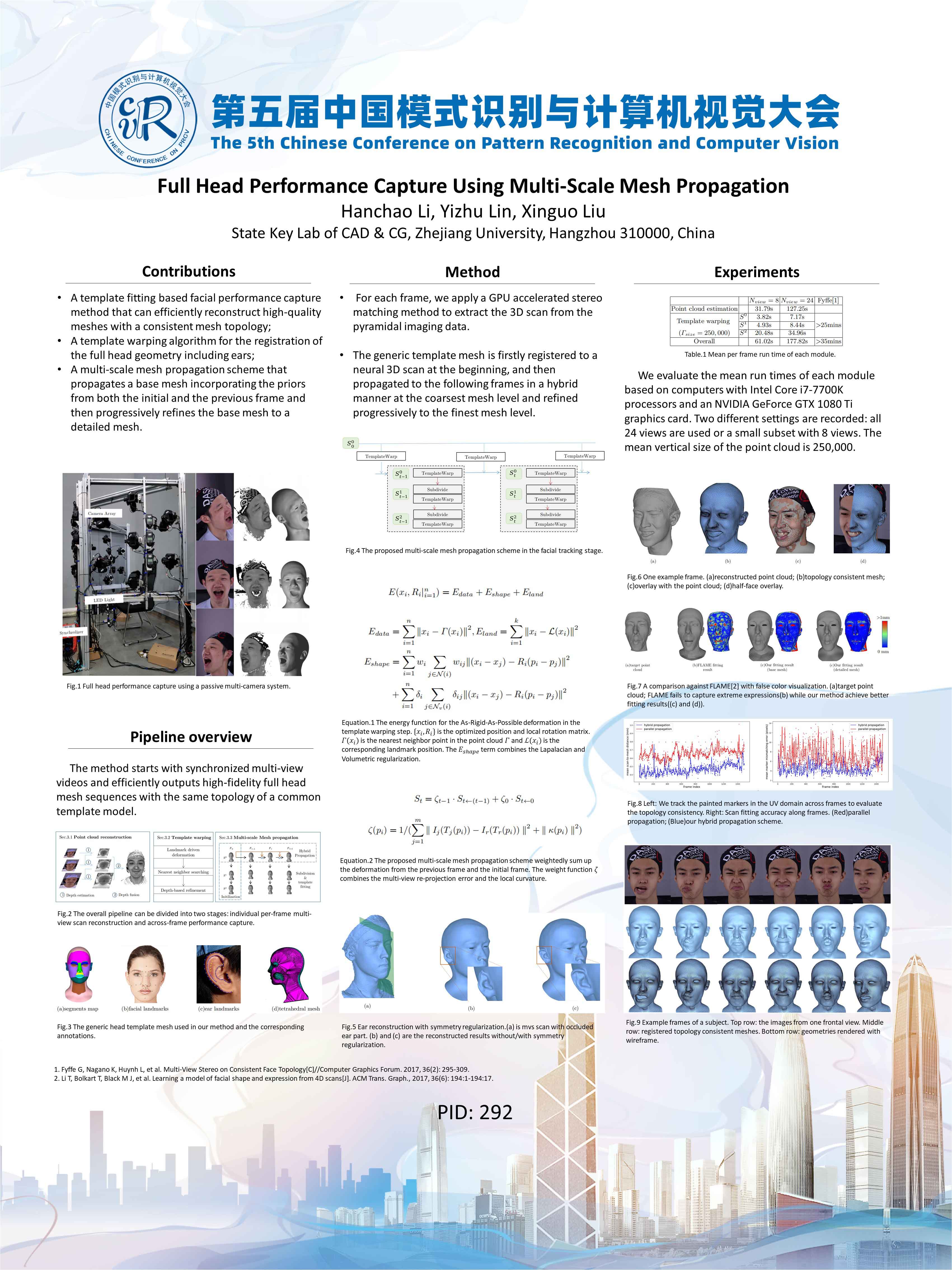 292 | Full Head Performance Capture Using Multi-Scale Mesh Propagation | Li, Hanchao*; Lin, Yizhu; Liu, XinGuo |