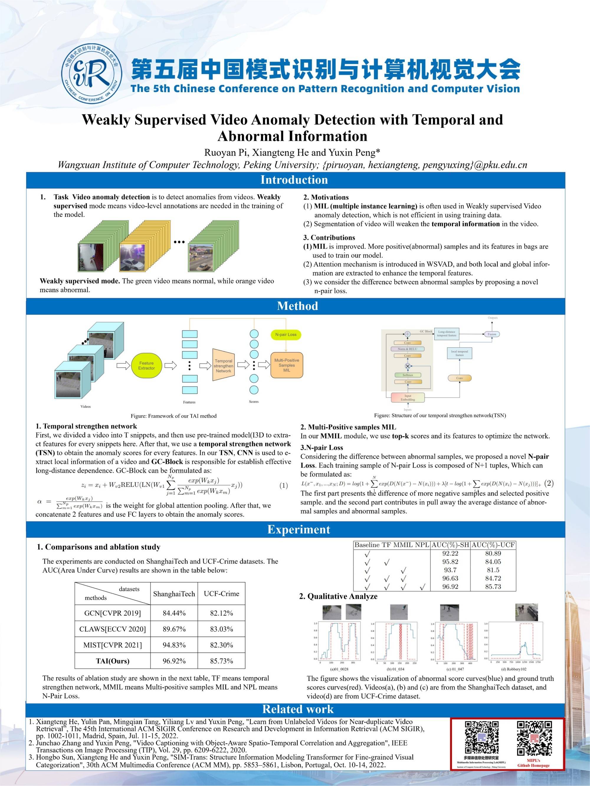 298 | Weakly Supervised Video Anomaly Detection with Temporal and Abnormal Information | pi, ruoyan; He, Xiangteng; Peng, Yuxin* |