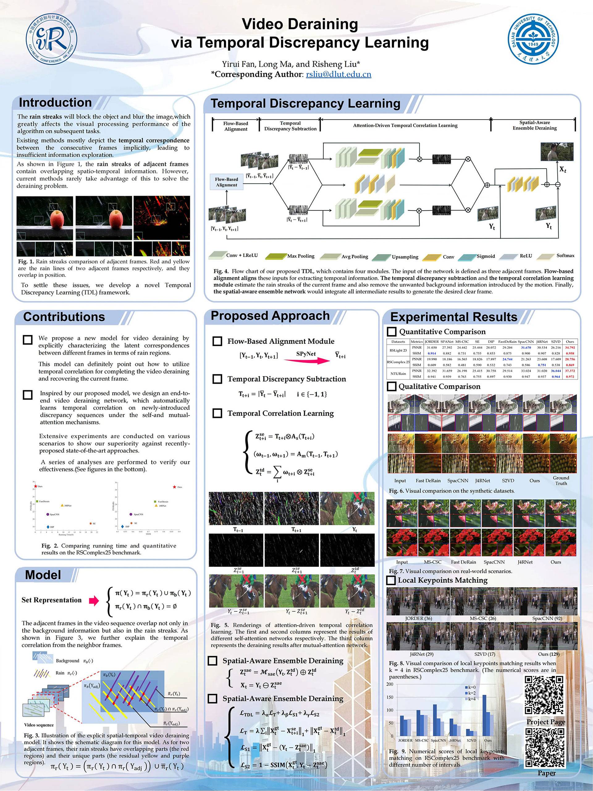 30⭐ | Video Deraining via Temporal Discrepancy Learning | Fan, Yirui; Ma, Long; Liu, Risheng* |