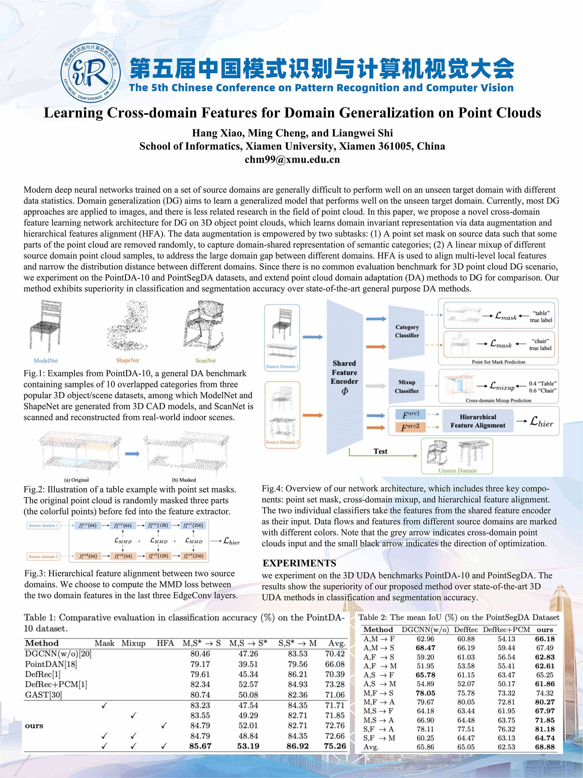 307 | Learning Cross-domain Features for Domain Generalization on Point Clouds | Xiao, Hang; Cheng, Ming*; Shi, Liangwei |