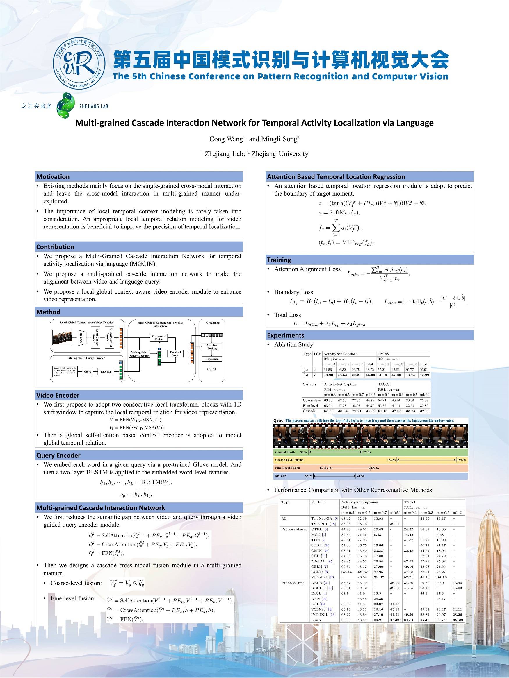 326 | Multi-Grained Cascade Interaction Network for Temporal Activity Localization via Language | Wang, Cong*; Song, Mingli |