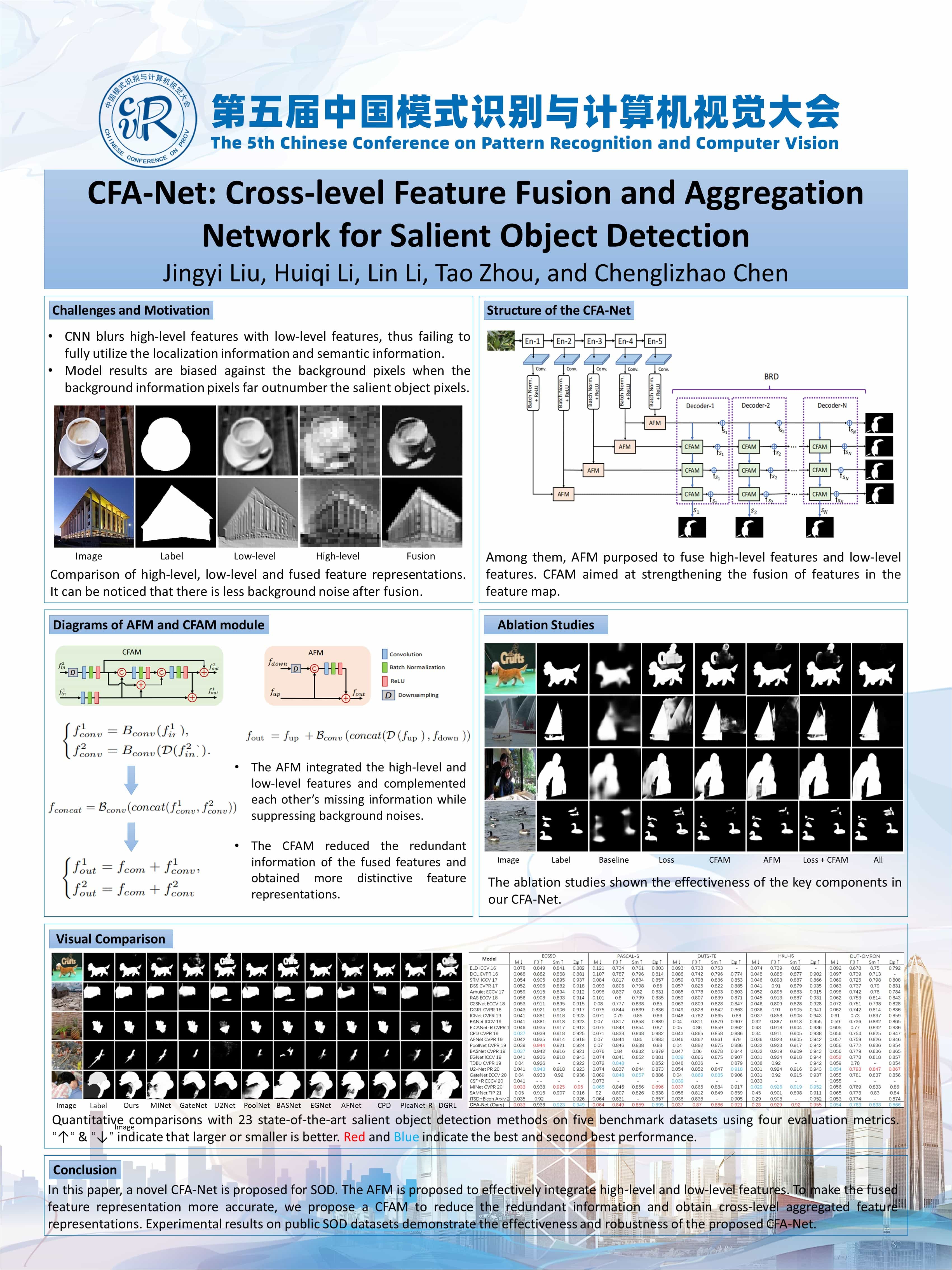 327 | CFA-Net: Cross-level Feature Fusion and Aggregation Network for Salient Object Detection | Liu, Jingyi; Huiqi, Li; Li, Lin; Zhou, Tao*; Chen, Chenglizhao |