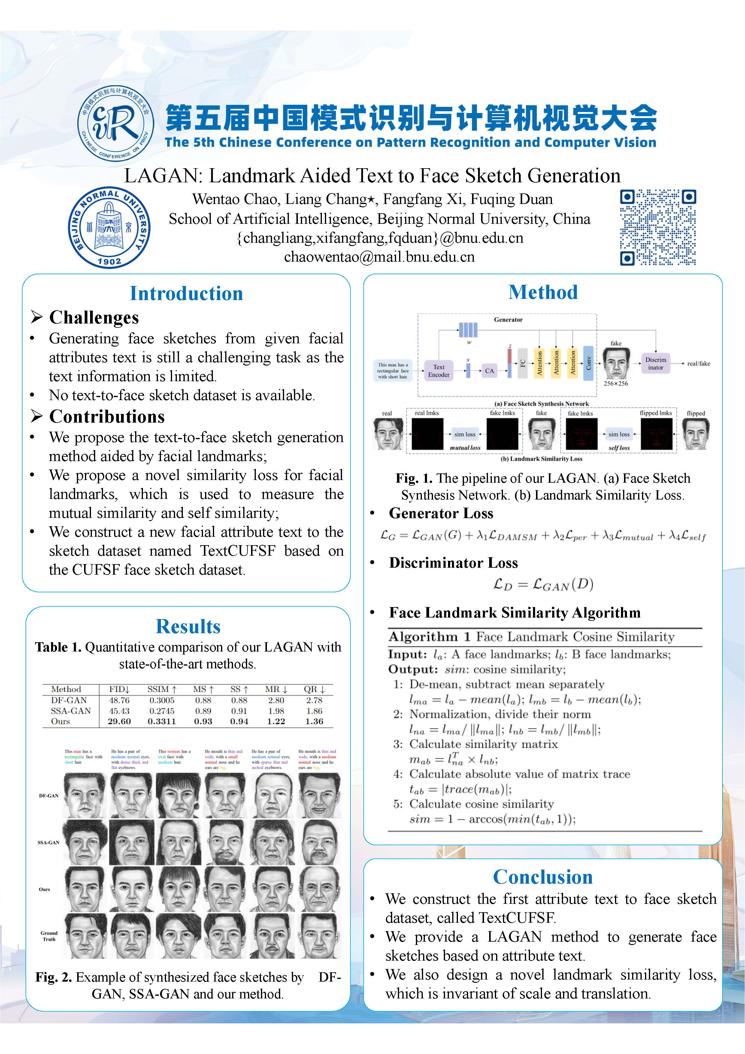 331 | LAGAN: Landmark Aided Text to Face Sketch Generation | Chao, Wentao; Chang, Liang*; Xi, Fangfang ; Duan, Fuqing |