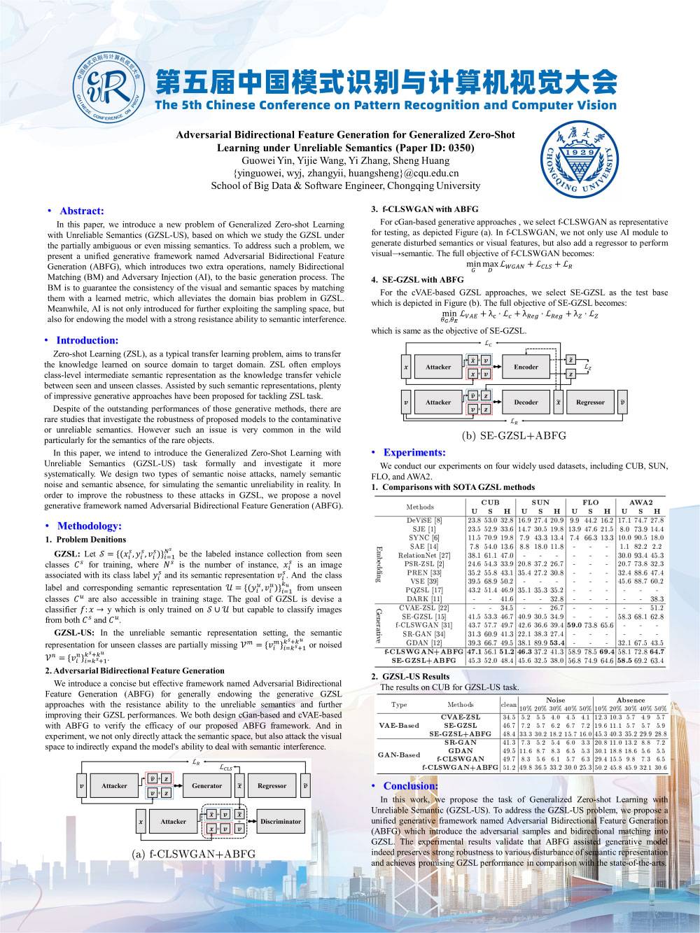 350 | Adversarial Bidirectional Feature Generation for Generalized Zero-Shot Learning under Unreliable Semantics | Yin, Guowei; Wang, Yijie; Zhang, Yi; Huang, Sheng* |