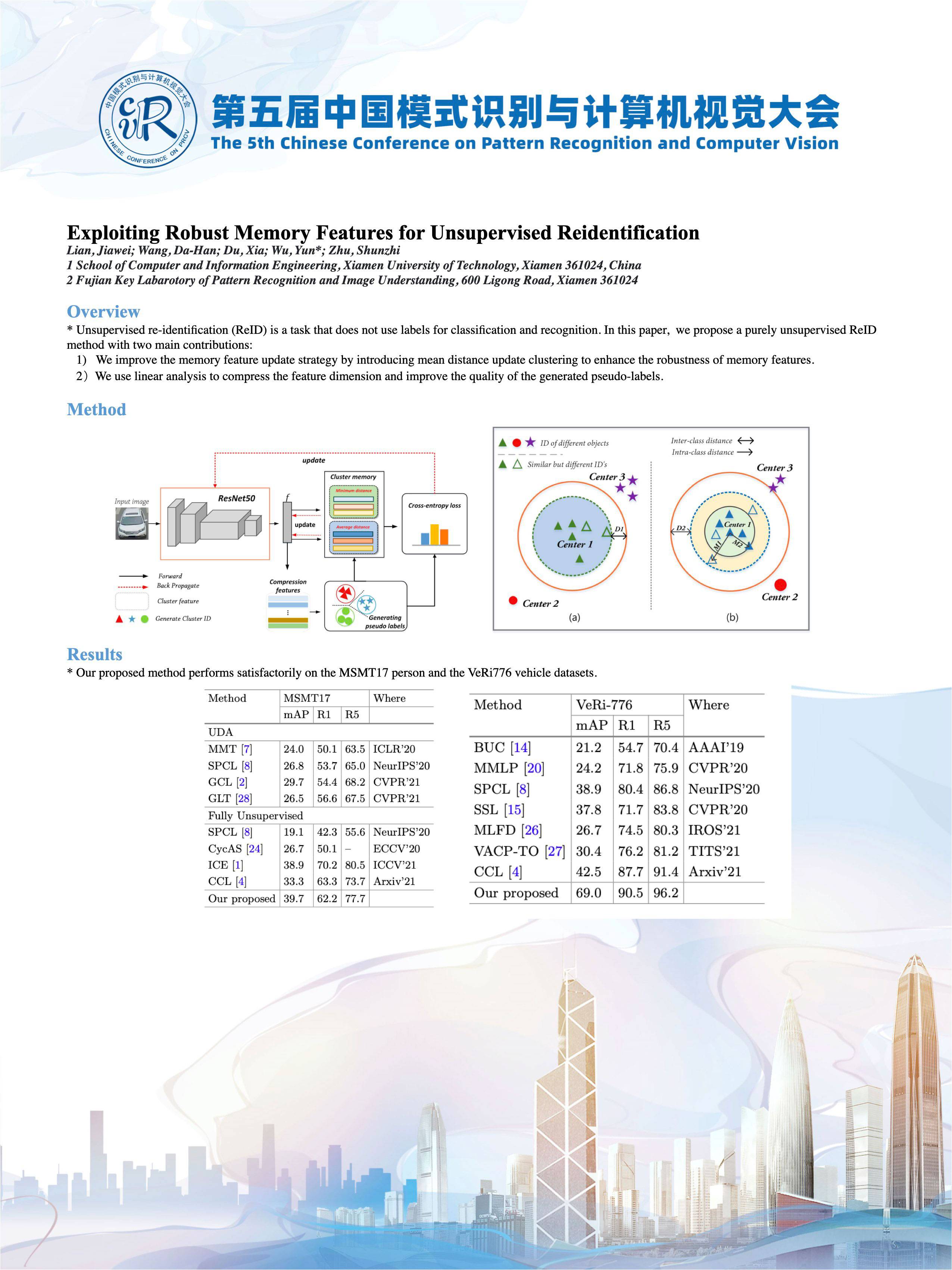 356 | Exploiting Robust Memory Features for Unsupervised Reidentification | Lian, Jiawei; Wang, Da-Han; Du, Xia; Wu, Yun*; Zhu, Shunzhi |