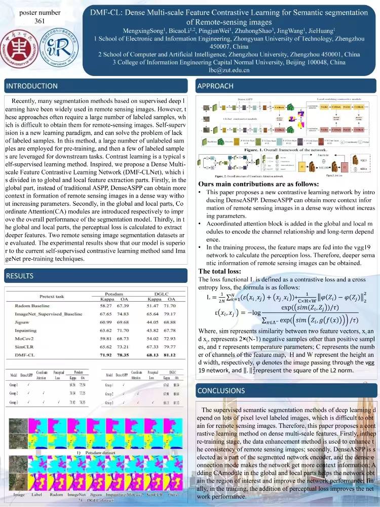 361 | DMF-CL: Dense Multi-scale Feature Contrastive Learning for Semantic segmentation of Remote-sensing images | Song, Mengxing; Li, Bicao*; Wei, Pingjun; Shao, Zhuhong; Wang, Jing; Huang, Jie |
