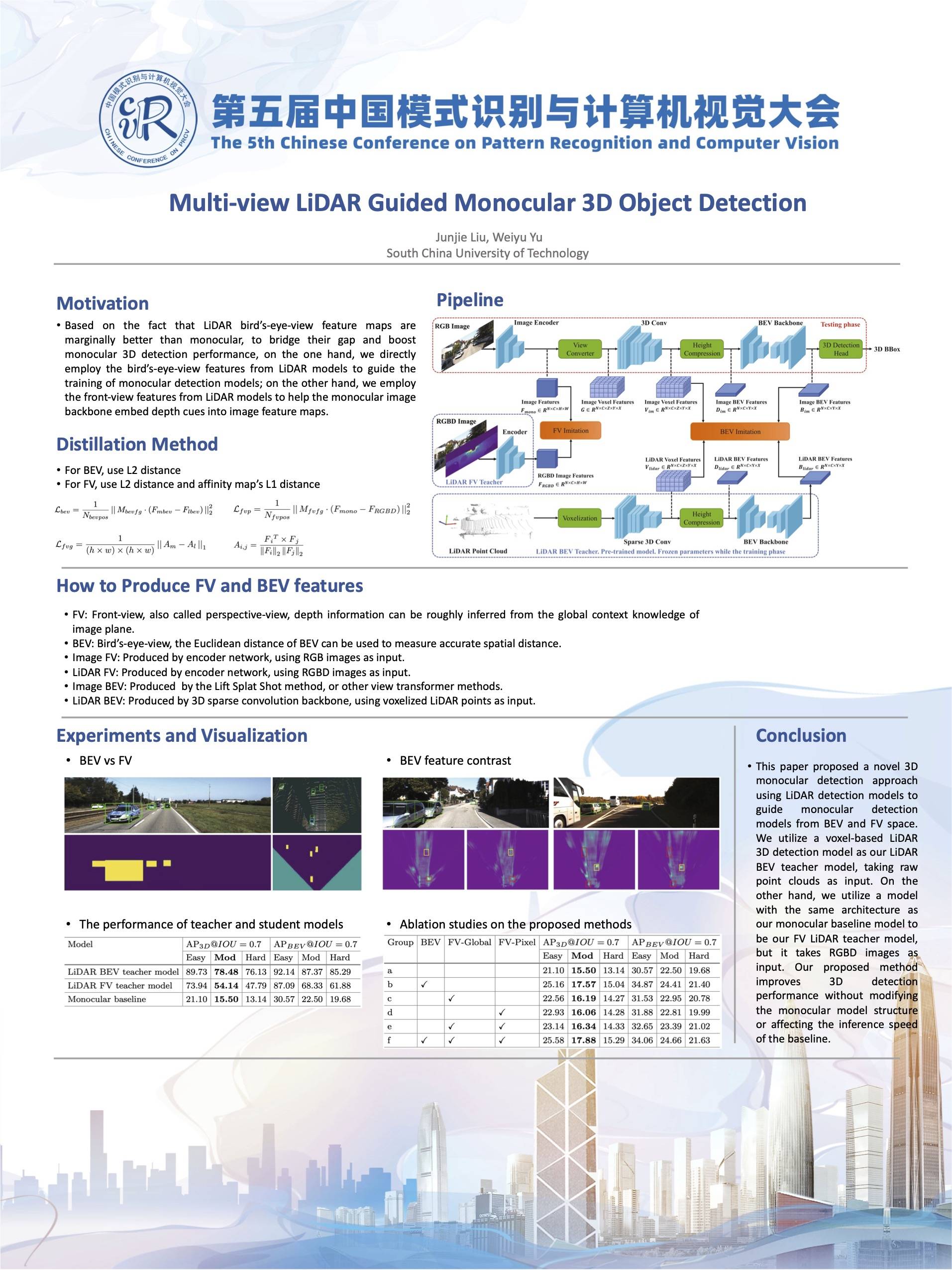 419 | Multi-View LiDAR Guided Monocular 3D Object Detection | Liu, Junjie*; Yu, Weiyu |