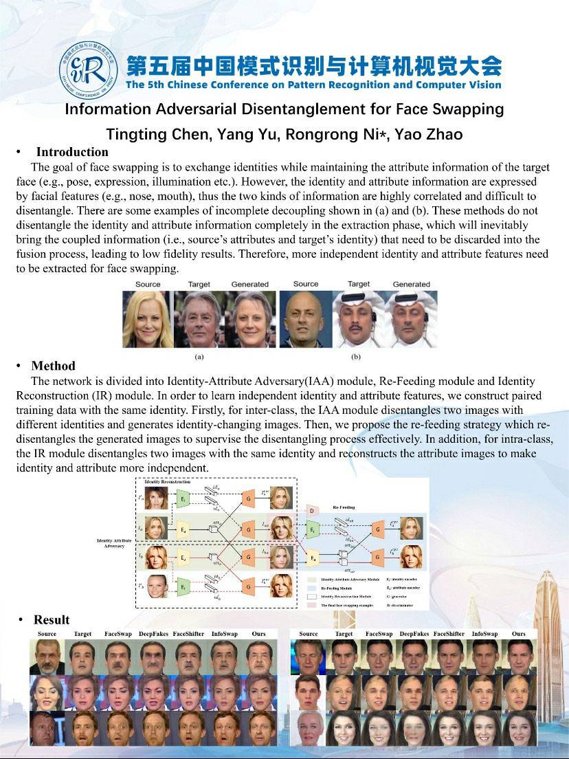 444 | Information Adversarial Disentanglement for Face Swapping | Chen, Tingting; Yu, Yang; Ni, Rongrong*; Zhao, Yao |