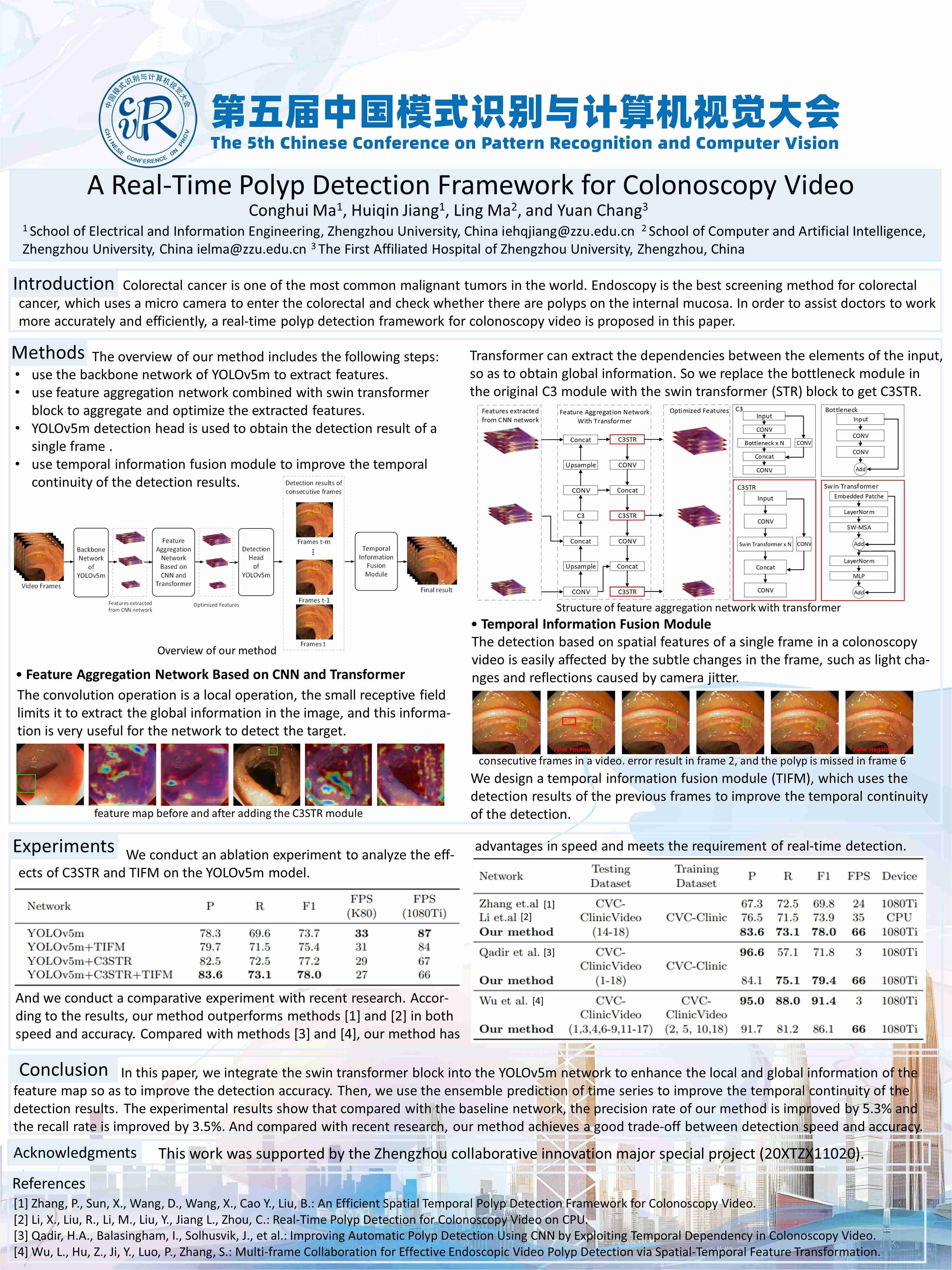 454 | A Real-Time Polyp Detection Framework for Colonoscopy Video | Ma, Conghui*; Jiang, Huiqin; Ma, Ling; Chang, Yuan |