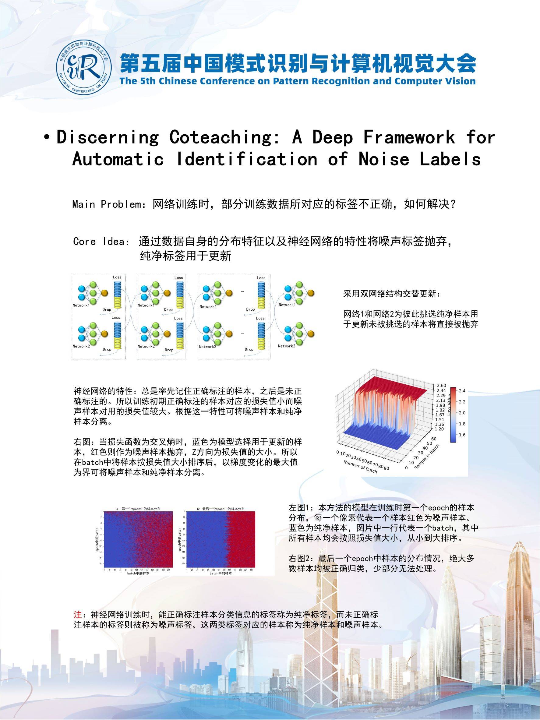 460 | Discerning Coteaching: A Deep Framework for Automatic Identification of Noise Labels | Wei, Qiliang*; Fu, Peng; zhang, peng; Wang, Tao |
