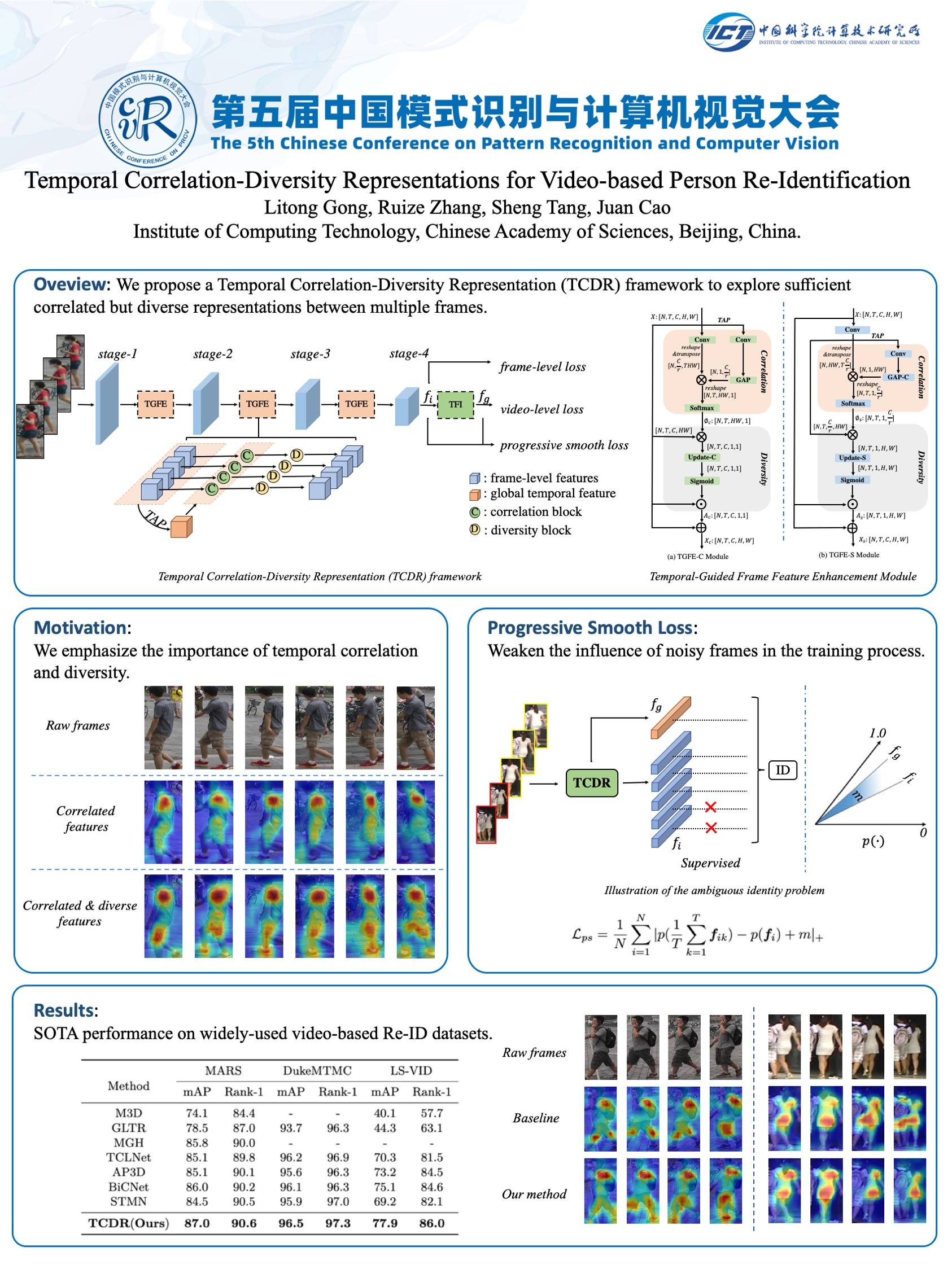 473⭐ | Temporal Correlation-Diversity Representations for Video-based Person Re-Identification | Gong, Litong; Zhang, Ruize; Tang, Sheng*; Cao, Juan |