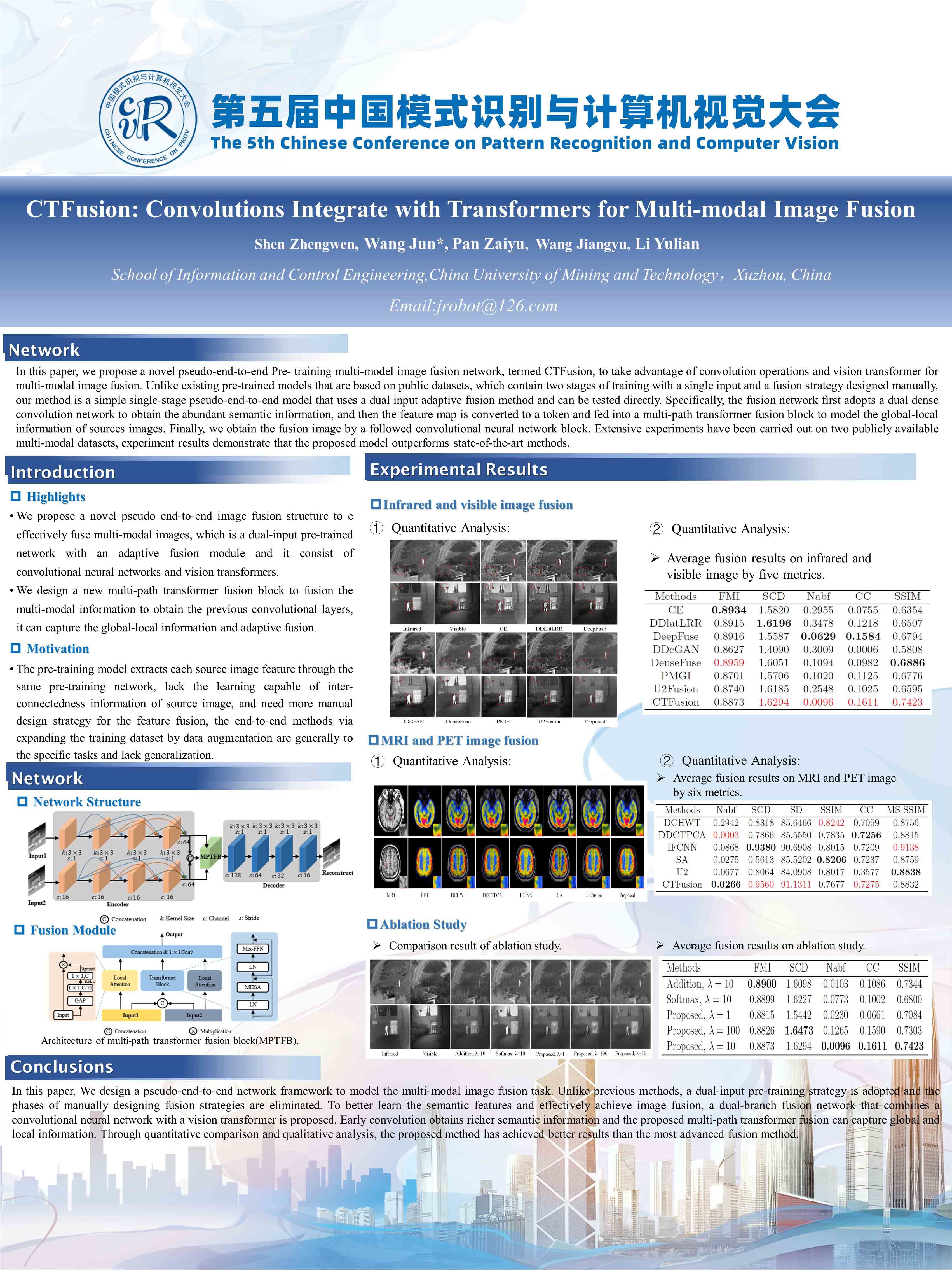 494 | CTFusion: Convolutions Integrate with Transformers for Multi-modal Image Fusion | Shen, Zhengwen*; Wang, Jun; Pan, Zaiyu; Wang, Jiangyu; Li, Yulian |