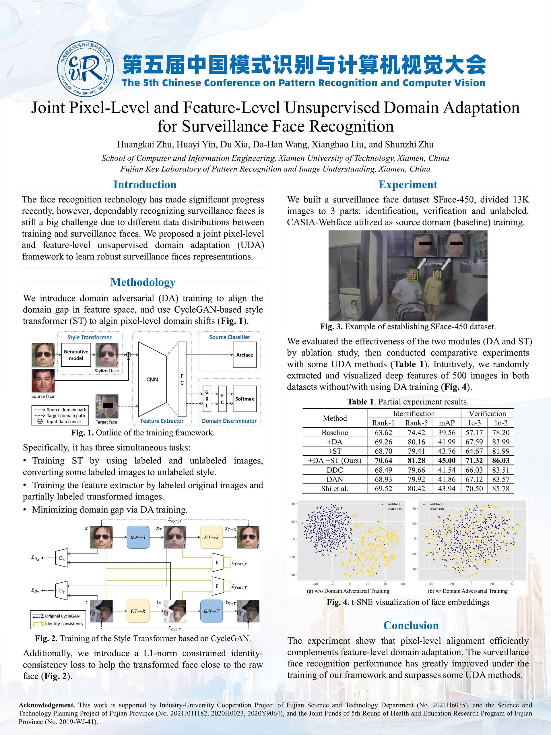 500 | Joint Pixel-level and Feature-level Unsupervised Domain Adaptation for Surveillance Face Recognition | Zhu, Huangkai; YIN, Huayi*; Du, Xia; Wang, Da-Han; Liu, Xiang-Hao; Zhu, Shunzhi |