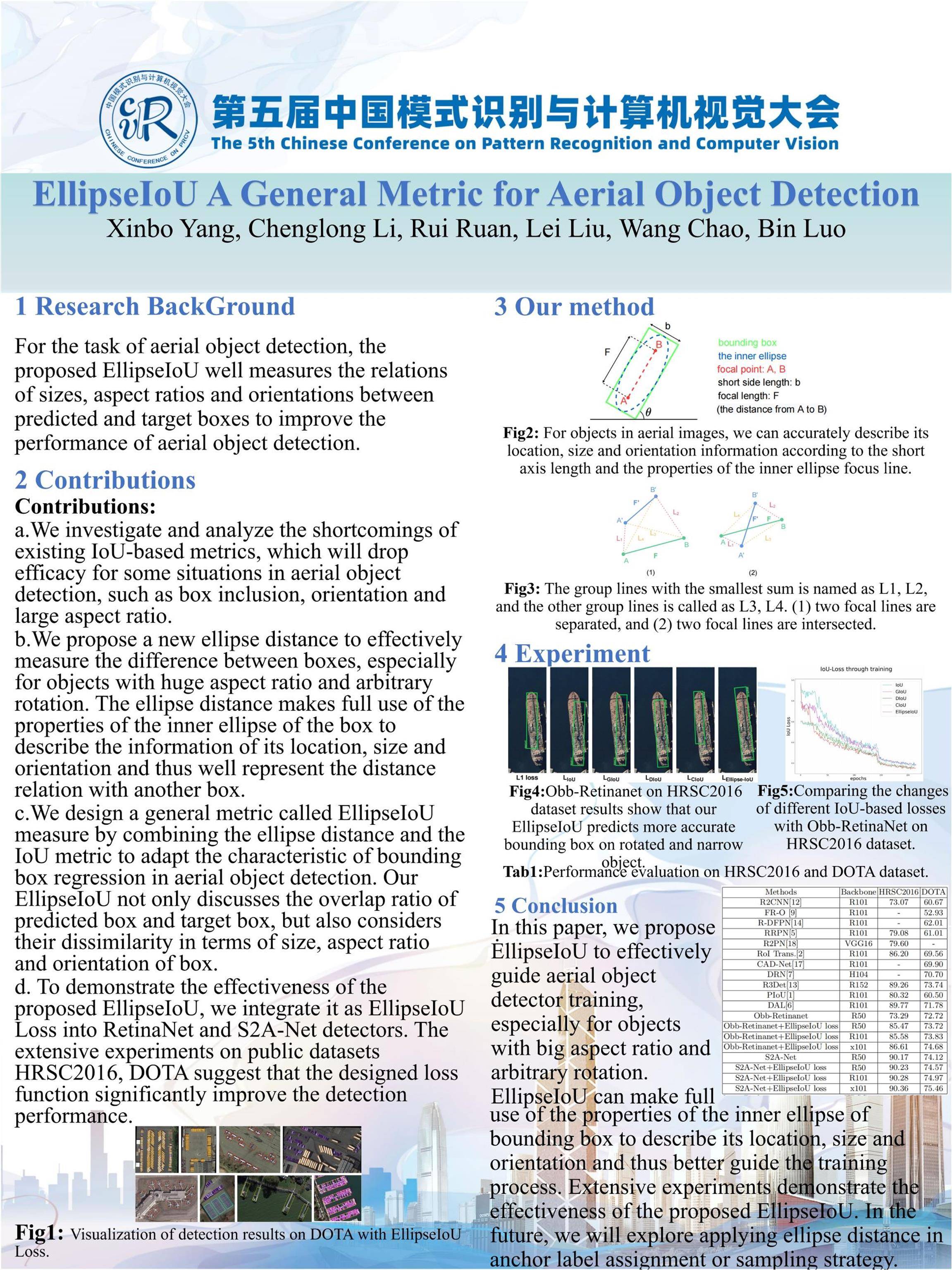 501 | EllipseIoU: A General Metric for Aerial Object Detection | Yang, Xinbo; Li, Chenglong; Ruan, Rui*; Liu, Lei; Wang, Chao; Luo, Bin |