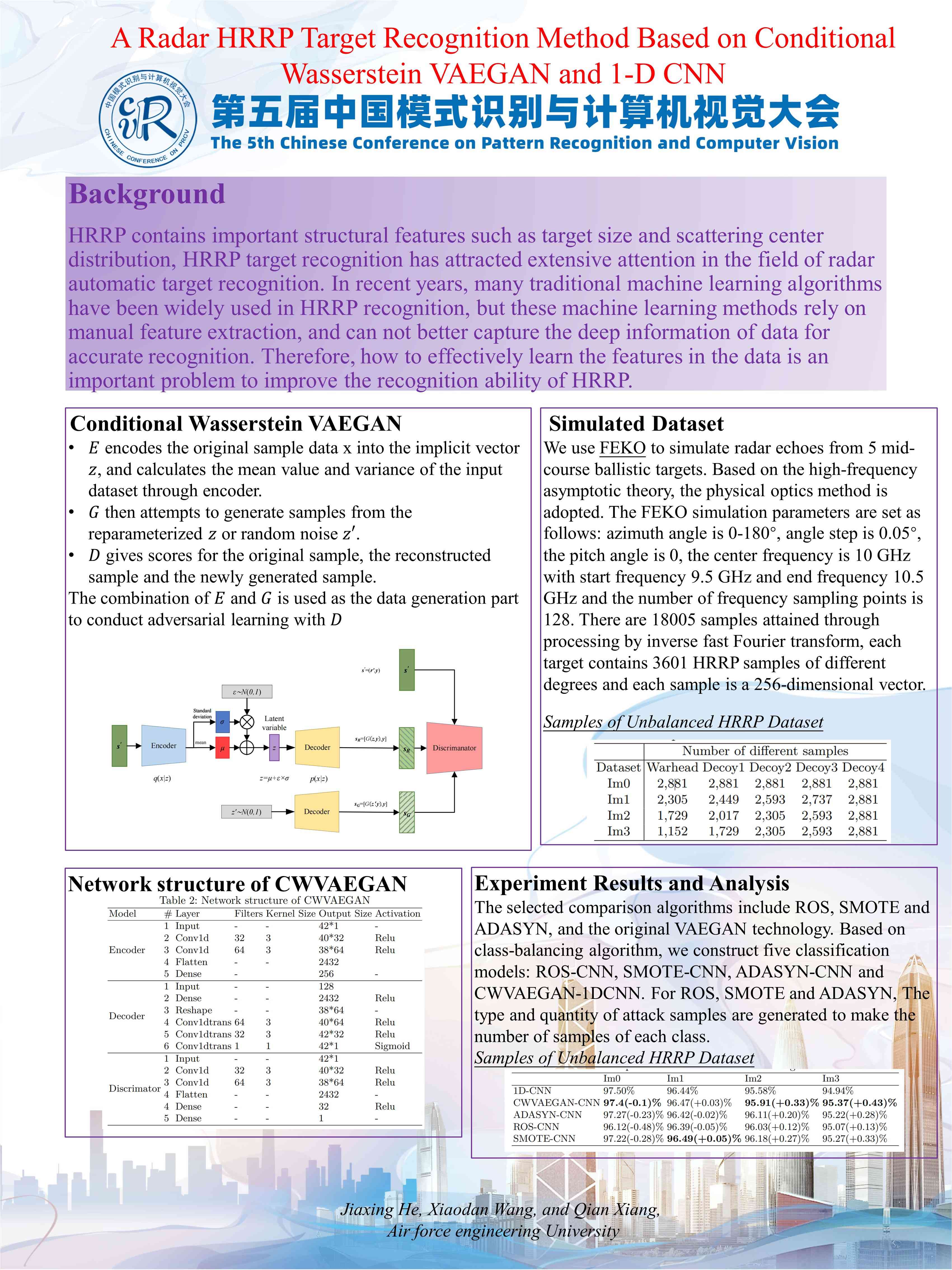 520 | A Radar HRRP Target Recognition Method Based on Conditional Wasserstein VAEGAN and 1-D CNN | He, Jiaxing; Wang, Xiaodan*; Xiang, Qian |