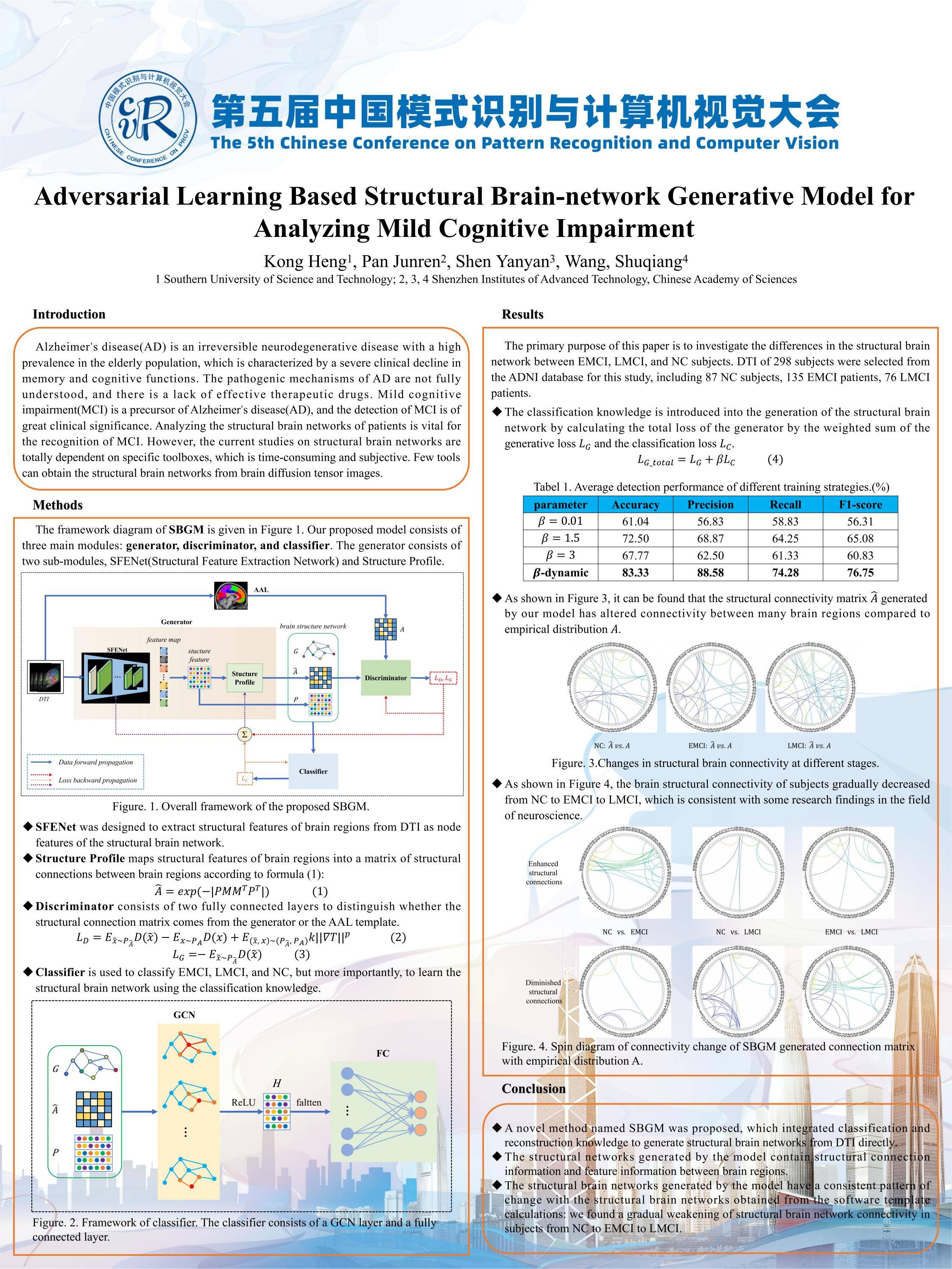 530 | Adversarial Learning Based Structural Brain-network Generative Model for Analyzing Mild Cognitive Impairment | Kong, Heng; Pan, Junren; Shen, Yanyan; Wang, Shuqiang* |