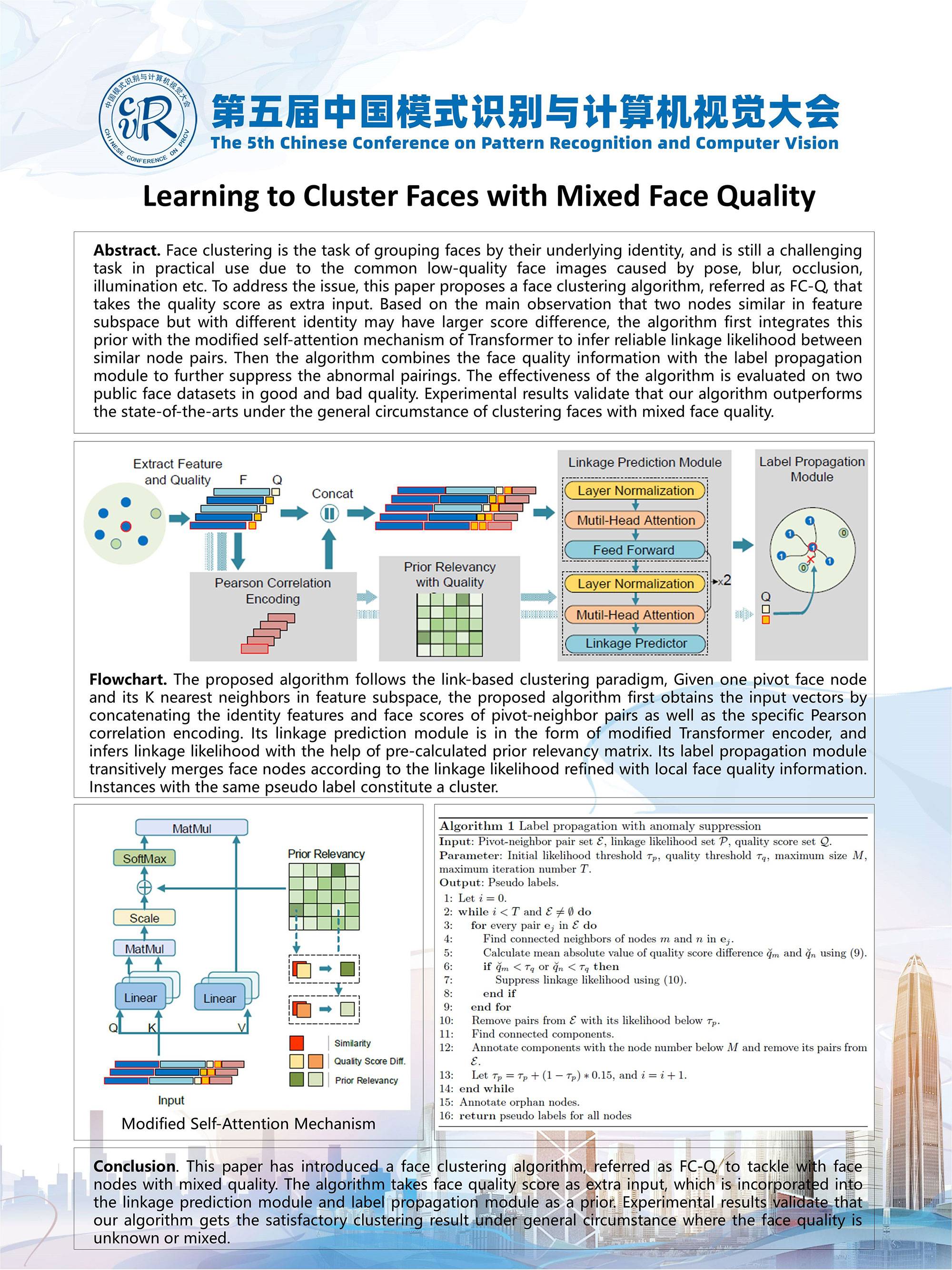 55 | Learning to Cluster Faces with Mixed Face Quality | Pan, Zhiwei*; Guo, Zhihua; Yang, Huiting; Yan, Congquan; Yang, Pengju |