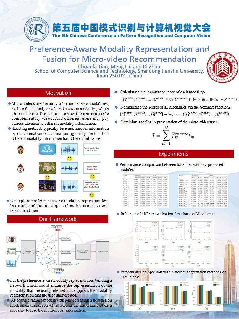 557 | Preference-aware Modality Representation and Fusion for Micro-video Recommendation | Tian, Chuanfa; Liu, Meng*; Zhou, Di |