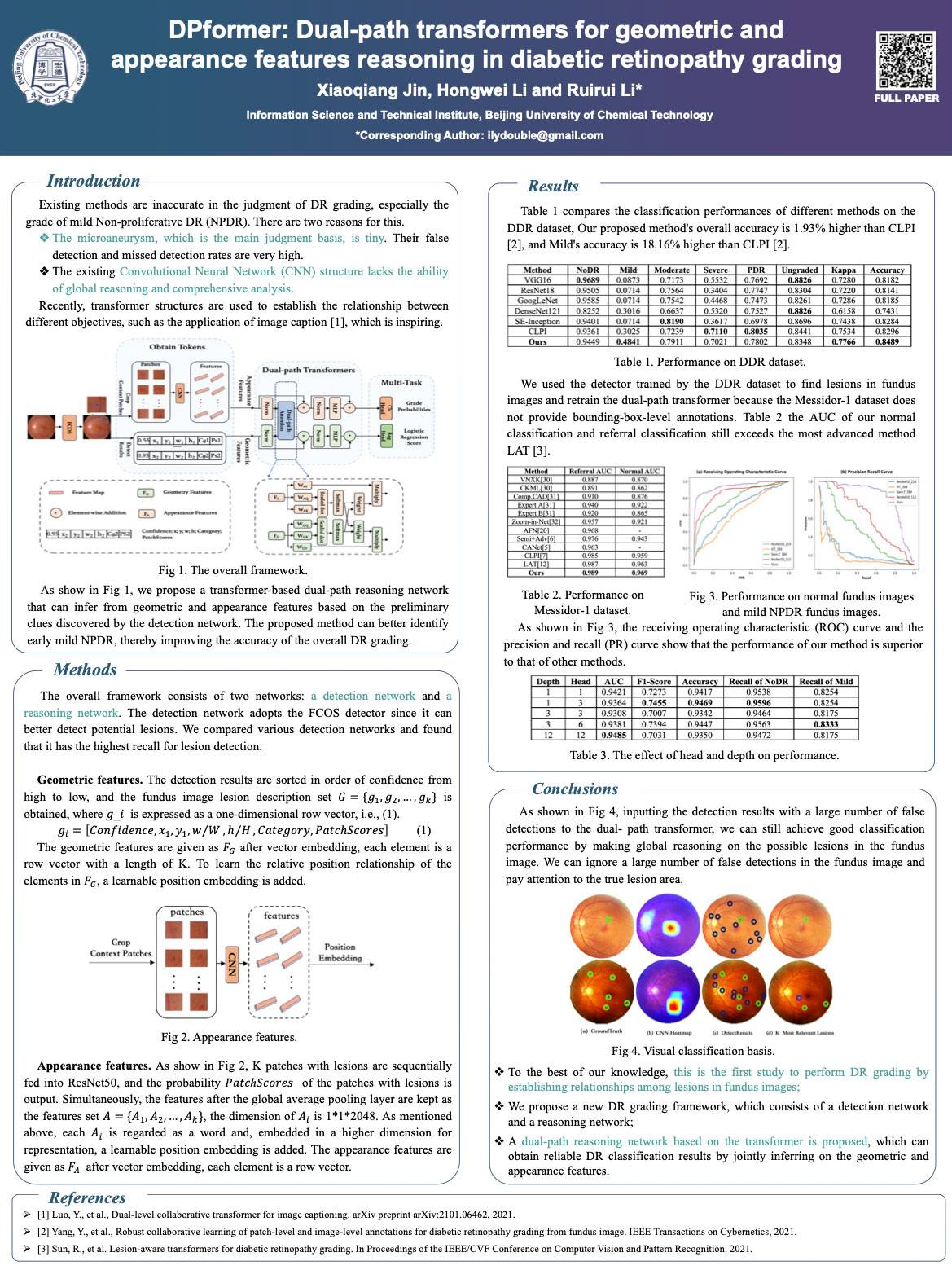 576 | DPformer: Dual-path transformers for geometric and appearance features reasoning in diabetic retinopathy grading | Li, Ruirui*; Jin, Xiaoqiang; Li, Hongwei |