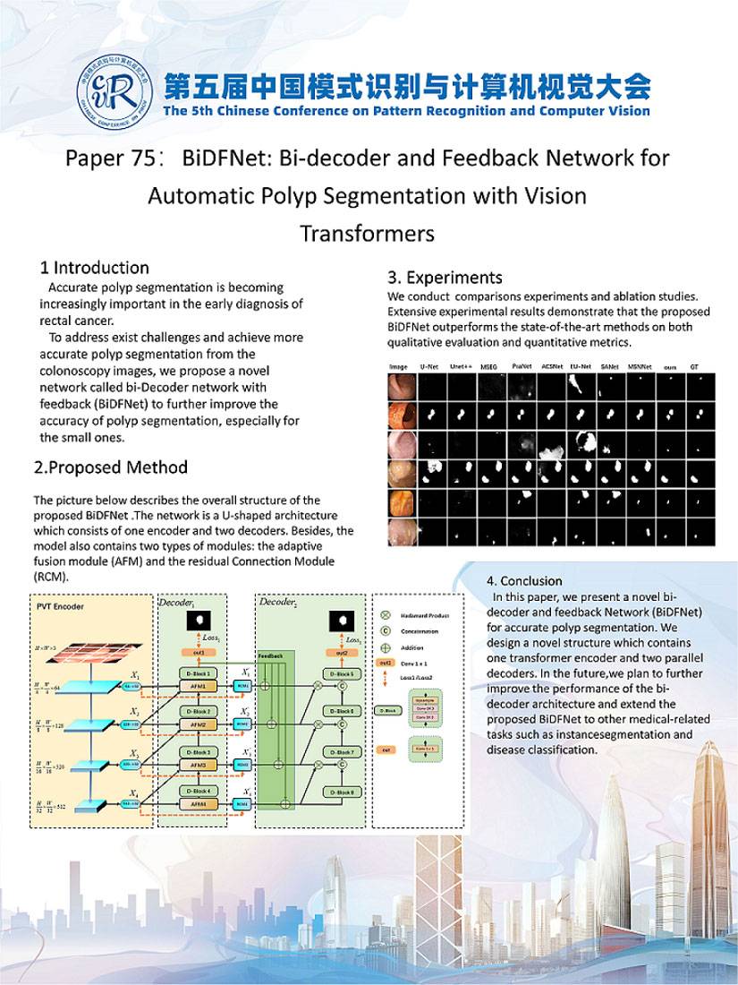 75 | BiDFNet: Bi-decoder and Feedback Network for Automatic Polyp Segmentation with Vision Transformers | Tang, Shu*; Qiu, Junlin; Xie, XianZhong; Zhang, GuoLi; Ran, HaiHeng |