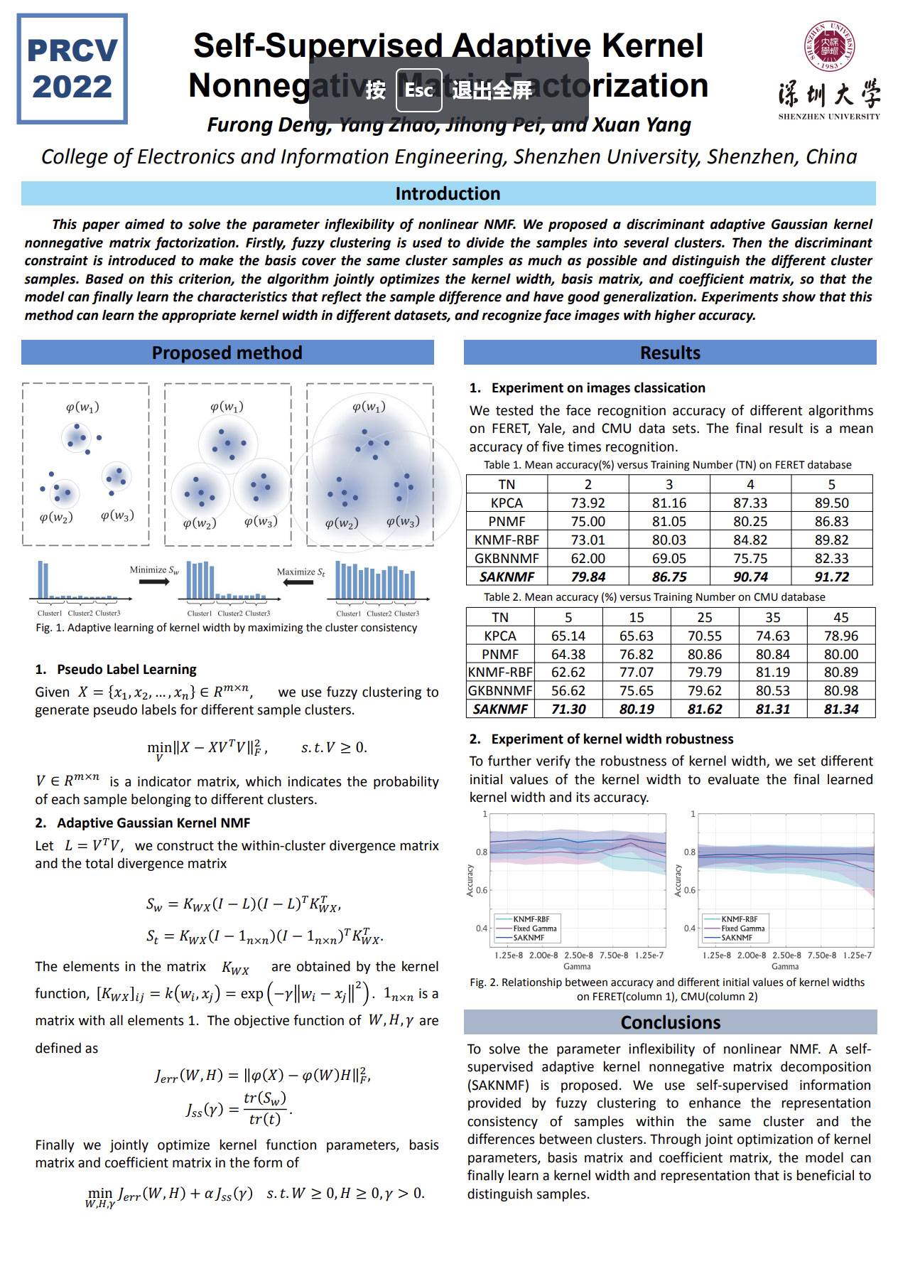 90 | Self-Supervised Adaptive Kernel Nonnegative Matrix Factorization | Deng, Furong; Zhao, Yang*; Pei, Jihong; Yang, Xuan |